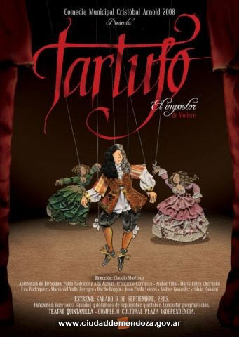 “Tartufo, el impostor” posee como ejes temáticos la hipocresía, la conveniencia, la mentira y la infamia; disvalores que aún hoy en día son motivos de reflexión. La pieza relata las peripecias de un burgués que por crédulo, hospeda en su casa a Tartufo, un impostor que simula ser un devoto religioso y en poco tiempo logra, con sus artimañas, sumir a toda la familia en confusión y preocupación. Escrita por el padre de la Comedia Francesa, Jean Baptiste Poquelin “Molière”, esta comedia en cinco actos, refleja las inquietudes del autor respecto de las cuestiones sociales y religiosas de su época que se traslucen en el argumento.