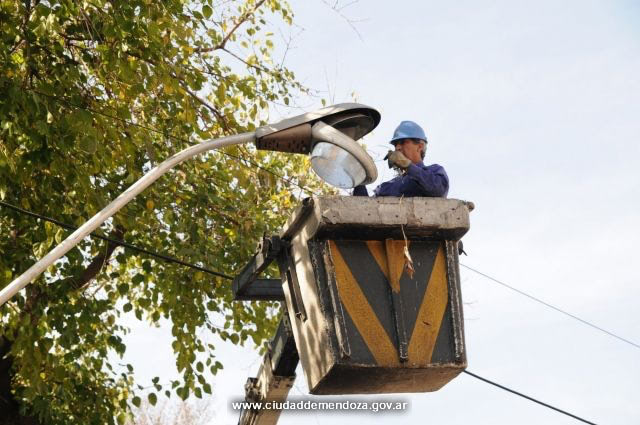 A partir de este Plan Intensivo de Servicios, el municipio viene realizando en la zona de la Quinta Sección, trabajos de mejoramiento del alumbrado público a partir de la limpieza de farolas y artefactos lumínicos y el recambio de luminarias.