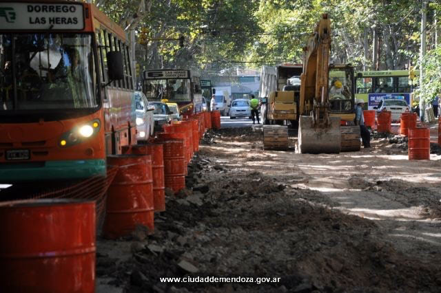 Si bien la obra de repavimentación de calle Godoy Cruz se inició dejando los laterales libres para la circulación del transporte público de pasajeros, la comuna se ve obligada a cortar totalmente los tramos mencionados ya que deberá demoler el pavimento en todo el ancho de la calle para rehacer las conexiones domiciliarias como consecuencia de haber encontrado que las cañerías de agua de OSM y las mencionadas conexiones domiciliarias, no cumplen con la tapada reglamentaria(1,20 m) lo que impide armar el paquete estructural de 68 cm. que requiere el repavimentado.