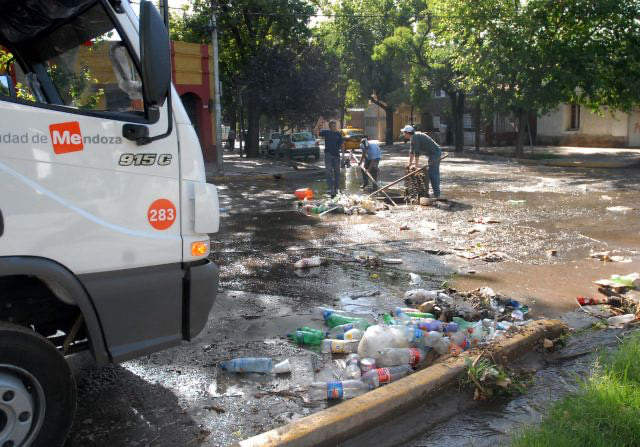 La imagen que mostramos corresponde a las tareas realizadas en el día de hoy por personal de la Dirección de Higiene Urbana de la comuna en la intersección de 9 de Julio y Pellegrini, aunque la escena se repite una y otra vez, cada jornada, a lo largo y a lo ancho de la Ciudad.