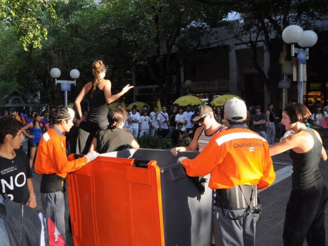 La actividad propuesta fue la puesta en escena de mimos como una acción de concientización que se suma al programa que se viene ejecutando durante la gestión del intendente Víctor Fayad y que además se implementa en los colegios de la ciudad durante el año lectivo.