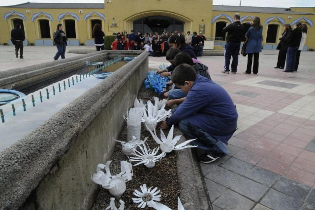 Para realizar la obra los jóvenes recolectaron botellas plásticas, poniendo en evidencia el problema urbano que significa la falta de consideración ciudadana en el cuidado de nuestro medio ambiente.
