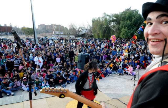 Con el cierre de Ciudad de los Chicos y un show del circo teatro Los Bípedos, la Plaza del reloj del Parque Central se colmó de niños el sábado en la tarde.