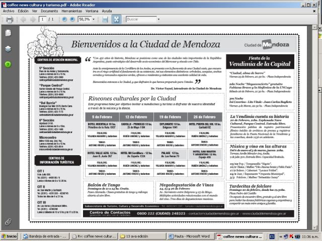 También se informan la ubicación de los CIT Centros de Información Turística y de los CAM, Centros de Atención Municipales, se suma a una variedad de actividades culturales que apuntan a acercar al turista y al vecino al Municipio y sus expresiones populares.
