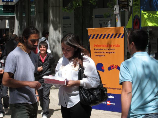 Las actividades de promoción y prevención comenzaron hoy en Peatonal Sarmiento. Allí se entregó folletería acerca de las pautas para conducir en forma correcta.