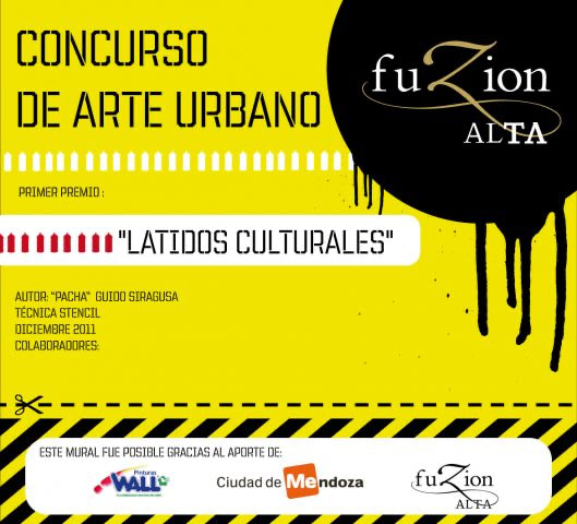 La Municipalidad de la Ciudad de Mendoza, Alta Fuzión y Pinturas Wall, invitan a la inauguración del mural, entrega de premios y degustación de vinos del Concurso de Arte Urbano Fuzión Alta Mendoza a realizarse el próximo domingo 4 de diciembre a las 20hs, con entrada libre y gratuita debajo del puente de Av. Mitre en el Parque Central.
