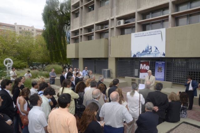 El rector de la UNCuyo, Arturo Somoza, el Secretario de Cultura de Capital Guillermo Romero, familiares y amigos del desaparecido antropólogo, descubrieron una placa en su honor, en el Paseo de la Reforma.