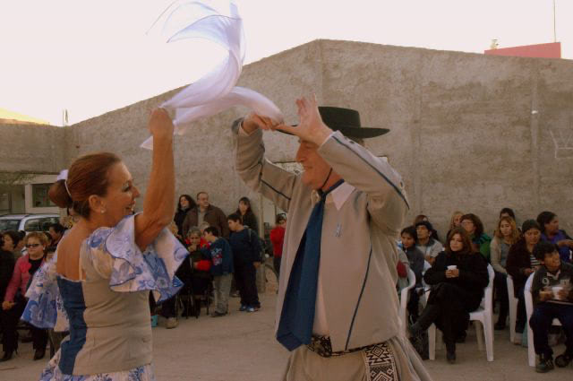 Luego, los presentes pudieron disfrutar de chocolate caliente y sopaipillas mientras observaban la actuación del ballet folklórico de adultos de la municipalidad de la Ciudad de Mendoza.