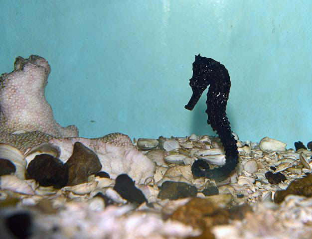Estos animalitos provienen de criaderos, es decir que no se los sacó de su hábitat natural. Tienen un hocico muy finito, por el cual se alimentan y una colita doblada que les sirve para sujetarse de las corrientes de agua. Por ser bastantes delicados en su alimentación, se les prepara una papilla de salmón rosado, camarones y mejillones. Su reproducción es muy difícil y tienen la particularidad de que es el macho el que incuba los huevos.