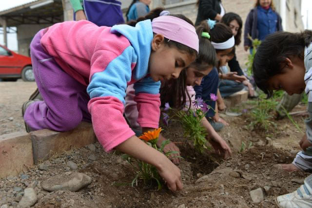 Los chicos plantaron árboles en La Favorita