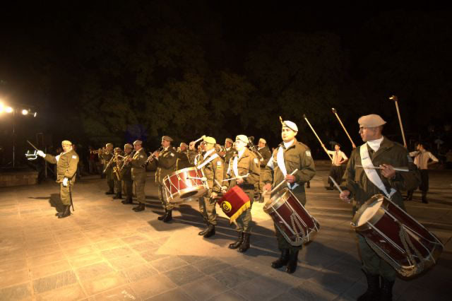 La representación consiste en que todas las bandas, en distintos puntos de nuestra plaza central , reproducen un episodio histórico en las proximidades del río Limay, cuando una patrulla se pierde en el desierto y a través de notas musicales que emite un clarín, todos los militares se reencuentran.