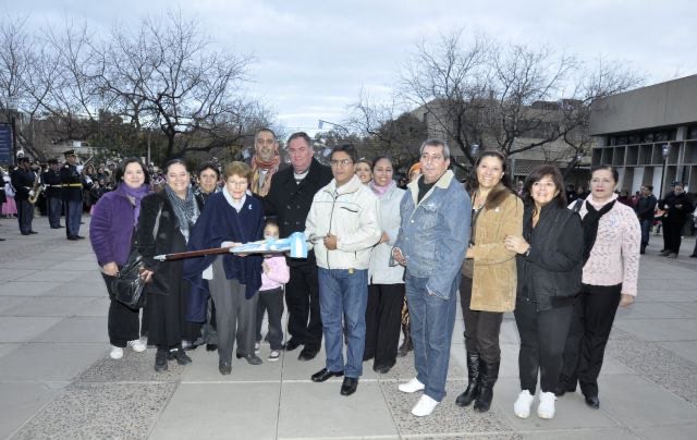 La directora de la escuela, Edith Posadas, acompañada por su equipo de profesores, recibió la Bandera con lágrimas en los ojos. Lágrimas de emoción, que representan sin dudas el cariño y el respeto por nuestra Patria.