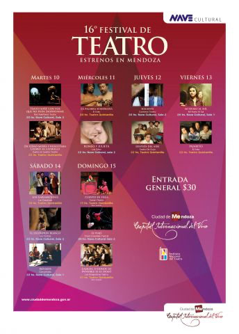 Organizado por la Municipalidad de la Ciudad de Mendoza, con el apoyo del INTeatro, el Festival de Teatro Estrenos en Mendoza presenta una selección de 12 obras de teatro para adultos estrenadas el último año.