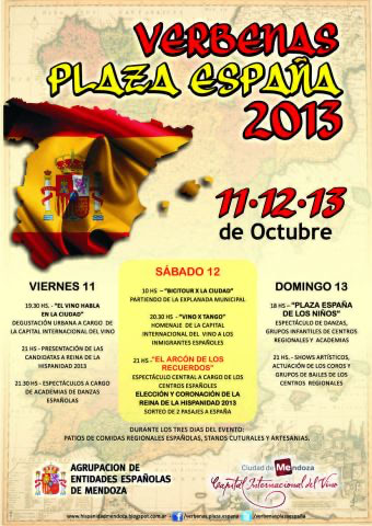- 23 horas: Elección y coronación de la Reina de la Hispanidad 2013. Sorteo de dos pasajes a España.