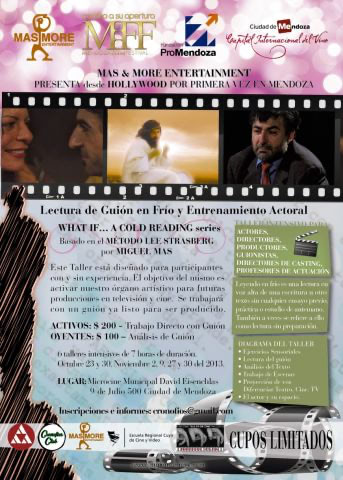 “El objetivo de este Taller Intensivo es activar nuestro músculo artístico de capacidad mental para futuras producciones en televisión y cine. Se trabajará con un guión listo para ser producido. Debemos actuar a través de nuestras propias experiencias y dirigir con nuestra propia sabiduría y entendimiento de la historia”, dijo Miguel Mas, actor, guionista, director y productor.