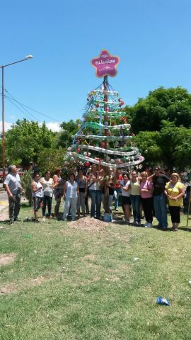 Los pinos, realizados con material reciclable, decoraron la entrada de cada uno de los puntos de la Ciudad nombrados.