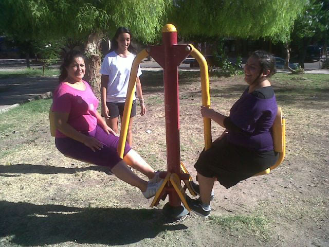 En la rotonda de ingreso al Bº San Martín, se puede disfrutar de los diferentes aparatos deportivos que conforman la plaza de salud. Los vecinos de la zona aprovechan al máximo este espacio, donde se pueden realizar distintas actividades saludables y al aire libre. Por tal motivo, las mismas personas que utilizan esta plaza propusieron, en las reuniones de Presupuesto Participativo, la idea de tener un profesional que los acompañe en sus ejercicios.