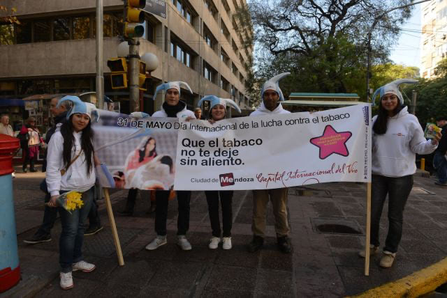 Además, teniendo en cuenta la cercanía del Mundial de Fútbol y el arraigo cultural de este deporte en los argentinos, entregamos gorros y fixtures bajo el lema “Que el tabaco no te deje sin aliento”. De manera simbólica, la entrega de estos elementos estuvo supeditada a que el transeúnte apague un cigarrillo en un cenicero portátil.