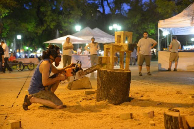 Tal como lo hizo el escultor local Federico Arcidiácono, quien estuvo el jueves a la tarde realizando impactantes obras en madera ante los ojos de visitantes que observaban con asombro su talento.