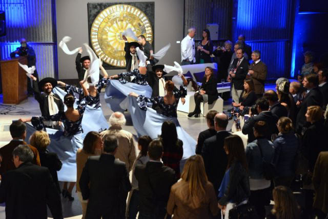 La Sala 1 de la Nave, embellecida por la muestra “Pinta tu Aldea” de Alfredo Ceverino, ofreció a estos profesionales de la cultura vitivinícola reconocidos internacionalmente una cálida recepción con comidas típicas, buenos vinos mendocinos, danza folclórica y tango en vivo de la mano del Ballet Municipal.
