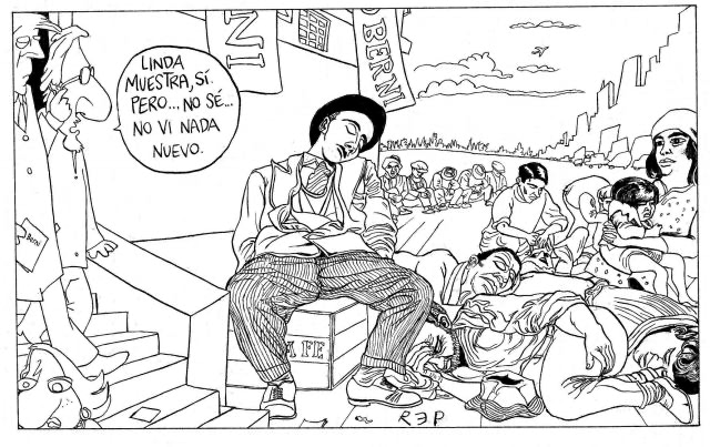 Además, Giunta, expresa en el catálogo de la muestra: “Existe un universo sofisticado, de pasiones y de posiciones, en el que se juegan subjetividades y visiones del mundo. Ese universo es el que aparece desplegado desde la pluma y el humor de Miguel Rep.