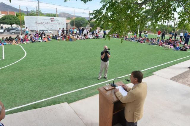 Cientos de chicos junto a sus familias asistieron al acto en el flamante predio deportivo ubicado en el Bº Alto Mendoza, frente al ingreso al Bº La Favorita.