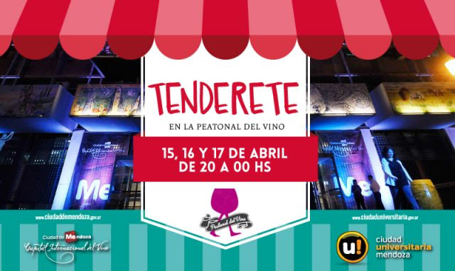 El miércoles 15, el jueves 16 y el viernes 17 de abril, llevaremos a cabo la tercera edición de Tenderete. De 20:00 a 0:00 horas, el paseo de compras itinerante de Ciudad Universitaria se presentará nuevamente en el marco de la Peatonal del Vino, en 9 de Julio 500 con entrada libre y gratuita.