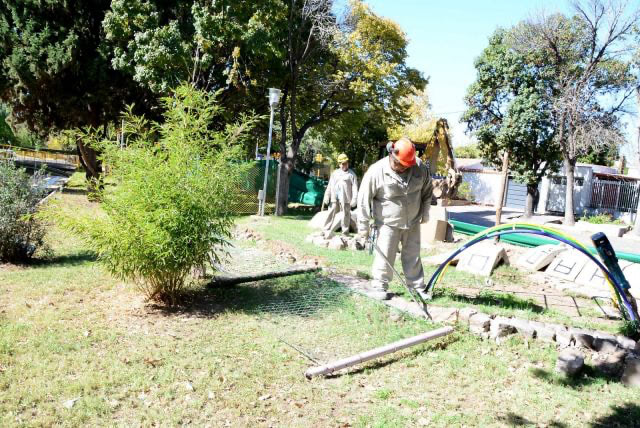 También la grilla de trabajos prevé la colocación de una reja metálica en todo el lado sur del zanjón de Los Ciruelos. Esta reja funcionará tanto como protección como de elemento de diseño, unificando la identidad del paseo y actuando como medio para incorporar señalética y equipamiento. También se construirá una cuneta al costado de la calle para mejorar el escurrimiento de aguas de lluvia y sobrantes de riego a través de camiones de agua.