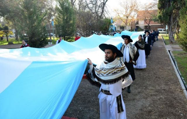 Vecinos de la Ciudad de Mendoza, funcionarios y alumnos de las escuelas de danzas Jesús Vera Arenas, Bellas Artes y Pablo Nogués, asistieron al emotivo acto en conmemoración a nuestra Bandera Nacional. El homenaje comenzó con la entrada de una gran bandera de 40 metros de largo a la Plaza Belgrano, ubicada en Capital.
