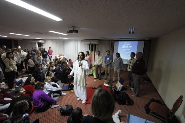 El escenario elegido fue la Sala Magna del Centro de Congresos y Exposiciones, donde más de cien personas disfrutaron de una clase magistral, que buscó un acercamiento vivencial al yoga y a la respiración, ambas disciplinas milenarias que mejoran la salud física, emocional y mental.