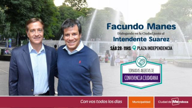 La Municipalidad de la Ciudad de Mendoza presentará la primera jornada abierta de convivencia ciudadana, que convoca a todos los vecinos a sumarse a un espacio de encuentro y participación, para avanzar en un acuerdo de buenas prácticas de ciudadanía. En este marco, el sábado 28 a las 11 horas, el destacado neurólogo y neurocientífico Facundo Manes tendrá una charla pública con los mendocinos junto al intendente Rodolfo Suarez en la plaza Independencia, de manera libre y gratuita.