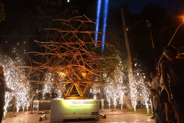 Miguel Gandolfo es el artista que realizó la obra denominada “Duelas que vuelven a ser árbol”, que hasta el 6 de enero ornamentará la plaza España y distinguirá el esfuerzo del trabajo, la identidad del pueblo y la esperanza de un nuevo año que comienza.