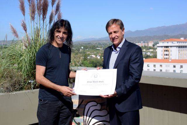 El intendente Suarez declaró Ciudadano Ilustre de la Ciudad de Mendoza al músico Felipe Staiti. El célebre y virtuoso guitarrista del grupo Los Enanitos Verdes recibió el reconocimiento de las manos del jefe comunal en la terraza municipal, este martes a la mañana.