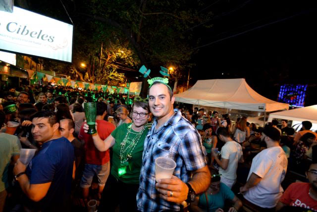 Fue un éxito. El centro mendocino explotó de gente. Pop, rock, cumbia, electrónica, buena onda, baile, juegos, sorteos y mucha birra. A la gente se la vio contenta, con ganas de pasarla bien. Sombreros, disfraces, tréboles, caras pintadas de verde, máscaras, pelucas. Los mozos iban de un lado a otro tratando de no dejar sin cerveza a ningún fiel.