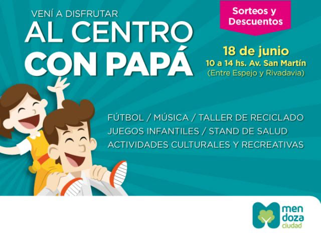Este sábado podés festejar el Día del Padre con tu papá en el centro. El municipio ha organizado una serie de actividades bajo el nombre de “Vení al Centro con Papá”, para que visitantes y turistas puedan disfrutar de una jornada distinta en la Avenida San Martín.