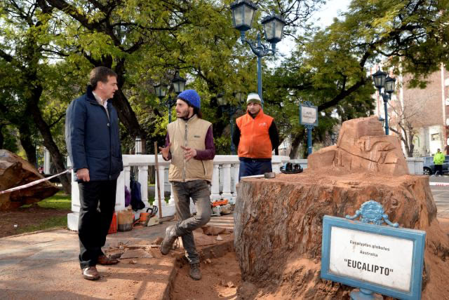 Por otra parte, ya está lista la restauración del conjunto escultórico que se ubica en la fuente. Además se intervino un eucalipto histórico, de aproximadamente 150 años que se encontraba gravemente dañado y además constituía un peligro para los transeúntes; por tanto, se cortó y se intervino la pieza artísticamente por el artista Federico Arcidiacono, especialista en esta disciplina.