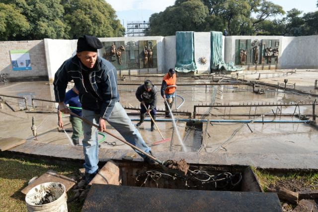 La Municipalidad de Ciudad refuncionalizó el escudo lumínico, cambió las luminarias a LED, y restauró el conjunto escultórico del frente de la fuente, entre otras mejoras.