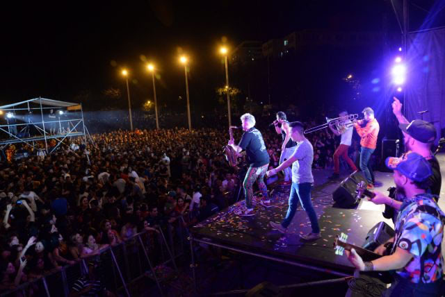 Unas 10 mil personas encendidas esperaban por la multitudinaria big band cordobesa, Los Caligaris, que ofrecieron un repertorio lleno de sus más exitosas canciones condimentadas con cuarteto, ska, rock, acrobacias y el irresistible sentido del humor cordobés. Sonaron temas de su último disco como “Todos locos” y “Que corran”, y no faltaron los clásicos “Nadie es perfecto” y “Asado y fernet”.