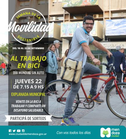 Este jueves 22, la Municipalidad de la Ciudad de Mendoza celebrará Día Mundial sin Auto, una acción que propicia el uso de medios de transporte alternativos para desacelerar la contaminación y el impacto ambiental que genera el tránsito vehicular, premiando a sus empleados que vayan a trabajar en bici.