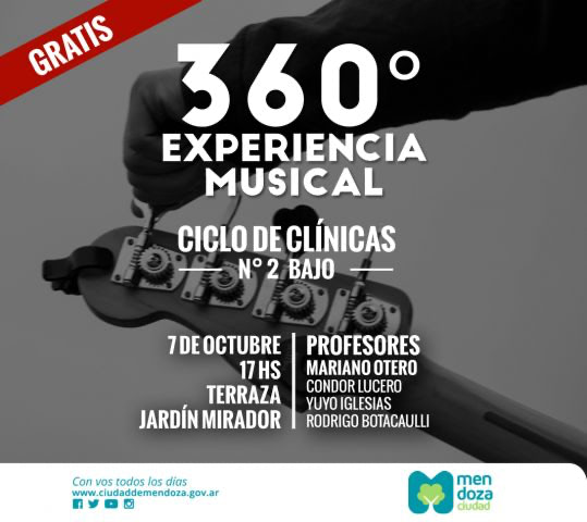 El bajo y sus cuatro cuerdas serán el objeto en foco de la próxima edición de “360º Experiencia Musical”, el ciclo de clínicas de instrumentos musicales que se realizará el viernes 7 en la Terraza Jardín Mirador de la Municipalidad de la Ciudad, con entrada gratuita.