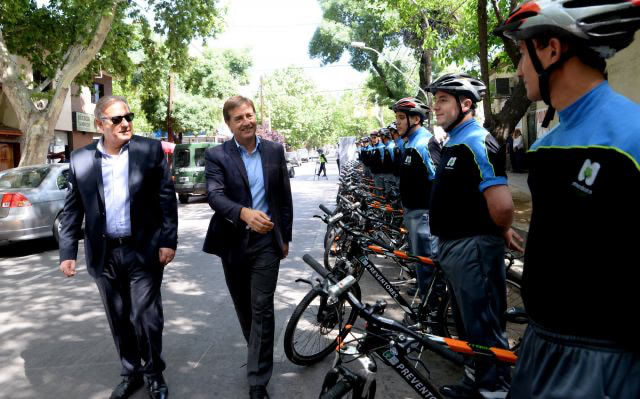 El intendente Rodolfo Suarez, presentó esta mañana al cuerpo de 24 bicipreventores, que recorrerán puntos estratégicos de la ciudad con el fin de reforzar la seguridad. “Esta es una nueva modalidad, que significa una actitud proactiva de colaborar con la seguridad de los vecinos, la hemos pensado como muy dinámica para estar cerca de la gente, que los bicipreventores hablen con ellos, que los escuchen”, sostuvo Suarez.