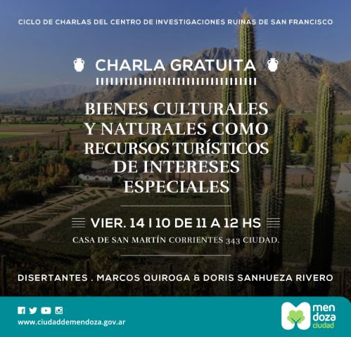 - Charla: “Bienes culturales y naturales como recursos turísticos de intereses especiales”, el caso del Valle Aconcagua (Los Andes, Chile).