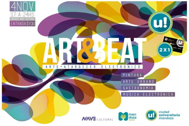 El viernes 4 de noviembre, desde las 17 hasta la medianoche, la música, el arte y el color del atardecer en la Ciudad de Mendoza se combinarán en “Art & Beat”​, ​un encuentro en la Nave Cultural, que organiza Ciudad Universitaria​ ​y del que participan DJ, VJ, pintores, chefs y productores de cerveza artesanal.