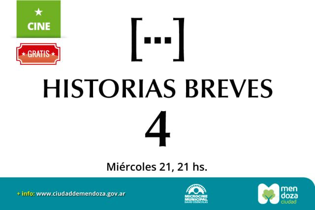 “Historias breves IV” tendrá su función este miércoles 21, a las 21 hs., en el Microcine Municipal David Eisenchlas. La entrada es gratuita.
