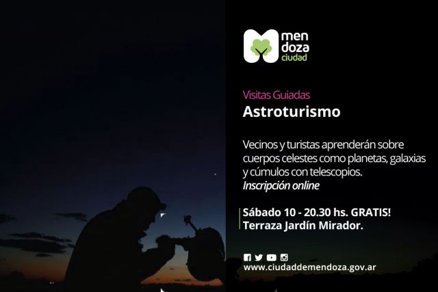 El sábado 10 de junio, invitamos a todos los interesados a formar parte de la nueva edición de Astroturismo. Desde la Terraza Jardín Mirador, a las 20.30 horas, disfrutaremos de las palabras del astrónomo Walter García, el guía especialista que nos acompaña en cada encuentro.