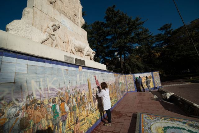Esta semana, el equipo de placeros de la plaza España informó que nuevos actos de vandalismo habían manchado el “Monumento a la hermandad hispanoargentina” que embellece ese pulmón de la Ciudad. Dibujos, rayones y grafitis en diferentes tintas ensuciaron tanto el frente de esta pieza patrimonial como sectores de atrás y del costado.