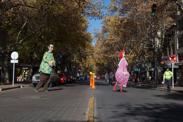 En el marco del “Día de la Seguridad Vial”, la Municipalidad de la Ciudad de Mendoza quiso festejar llevando alegría a la vía pública con dos muñecos gigantes, “Los Miranda”, quienes recorrieron la peatonal mientras les recordaban normas básicas de tránsito a los ciudadanos. Además participaron preventores con megáfonos brindando información sobre normativa de circulación a peatones y conductores de vehículos.