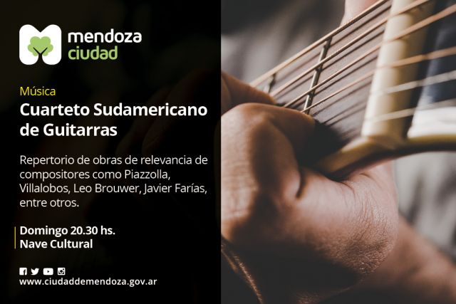 Dentro del marco de su gira internacional, este domingo 2 de julio, a las 20.30, se subirá al escenario de la Nave Cultural el Cuarteto Sudamericano de Guitarras. Este ensamble promete un concierto con lo mejor de la música clásica interpretada en cuerdas por grandes músicos de relevancia internacional.