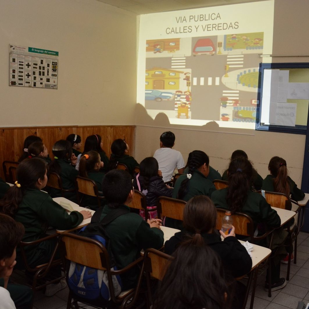 Estas acciones se realizan periódicamente en diversos establecimientos escolares, primarios y secundarios. Se abordan distintas temáticas que se desarrollan acorde a la edad de los pequeños, haciendo hincapié en los derechos y obligaciones que involucran los roles de peatón y pasajero.