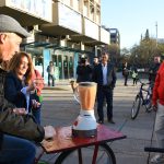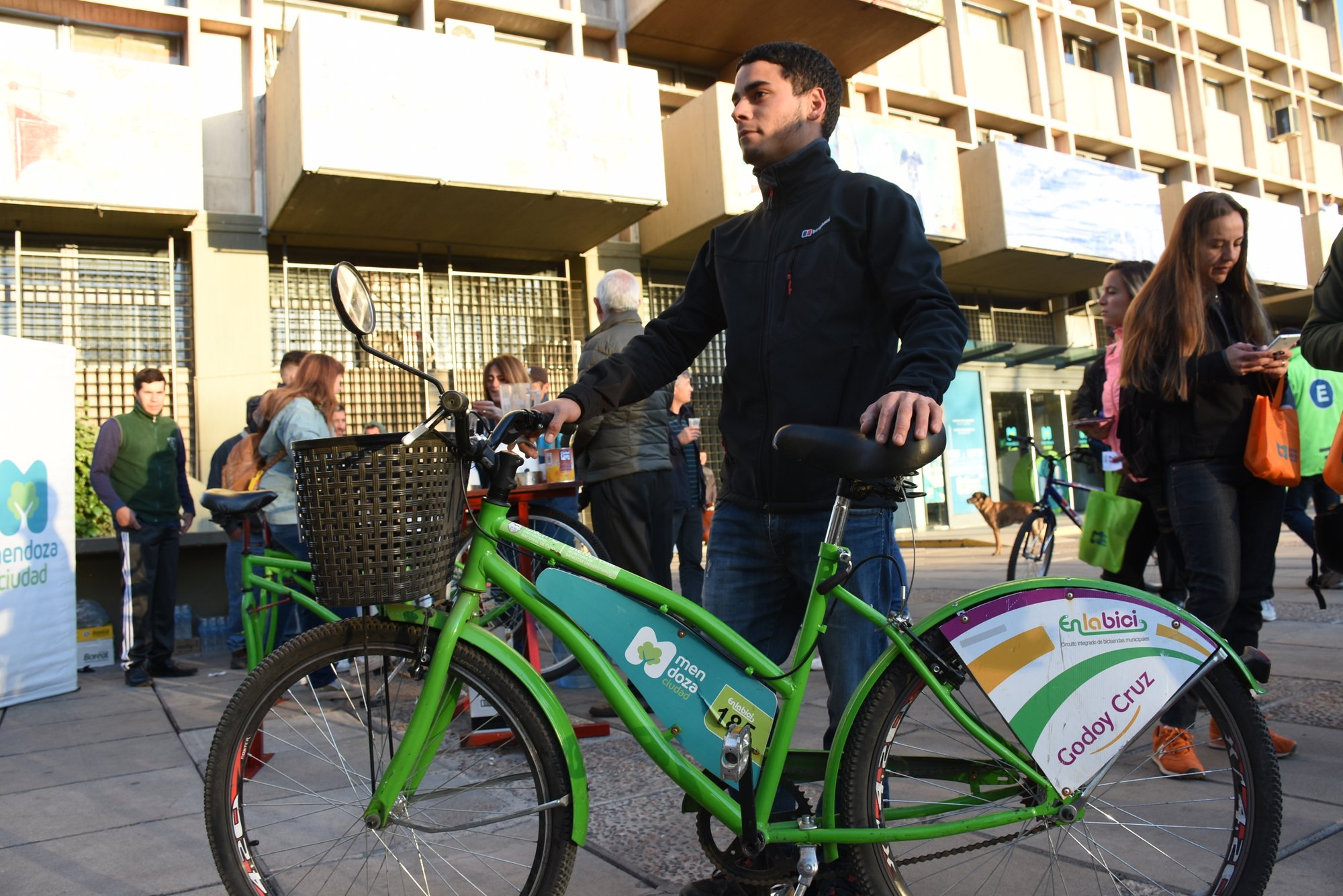 Suarez dijo: “Hoy es un día especial en la Municipalidad de la Ciudad de Mendoza. Hay muchos empleados que han venido a trabajar en bicicleta. Van a ser premiados con $300 y riquísimos jugos naturales hechos en la bicilicuadora, que es furor entre los asistentes, le ha puesto mucho color”.